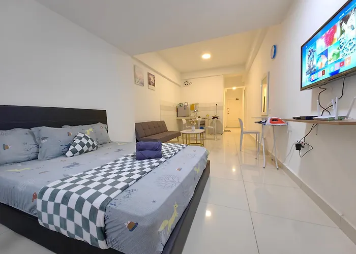 El June Homestay Api Api Apartment Beside Centre Point Studio 3Pax cuenta con instalaciones de autoservicio como nevera y menaje de cocina, lo que brinda a los huéspedes la independencia para preparar sus propias comidas. El aeropuerto internacional Kota Kinabalu está a 9 minutos en coche, y la parada de autobús Terminal Marina Court, a 400 m de este apartamento.